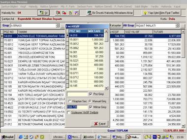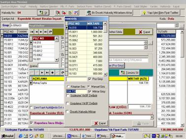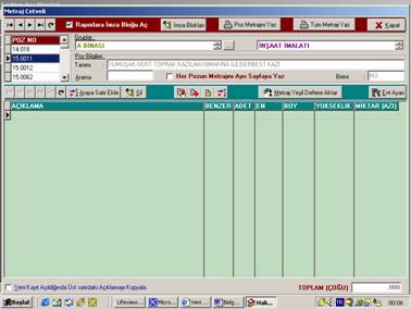 I nci KEŞİF Menüsü açılır. Buradaki her türlü poz ve miktar girişleri