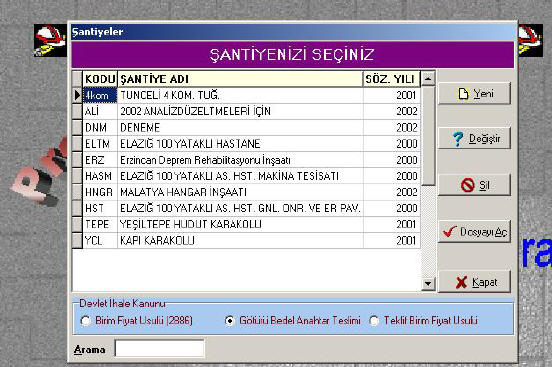 Şantiye Seçim Ekranına ulaşılır. Yeni bir Şantiye açılır veya mevcut